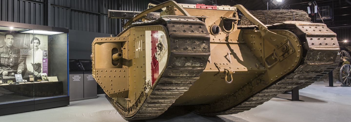 Among the new features was a rear cab for the commander, complete with signalling apparatus and a rear machine-gun position. Our exhibit also carries an unditching beam, which was first introduced in the Mark IV. This would be used if the tank got stuck in mud – chained to the tracks it was drawn under the tank and gave it something solid to grip.