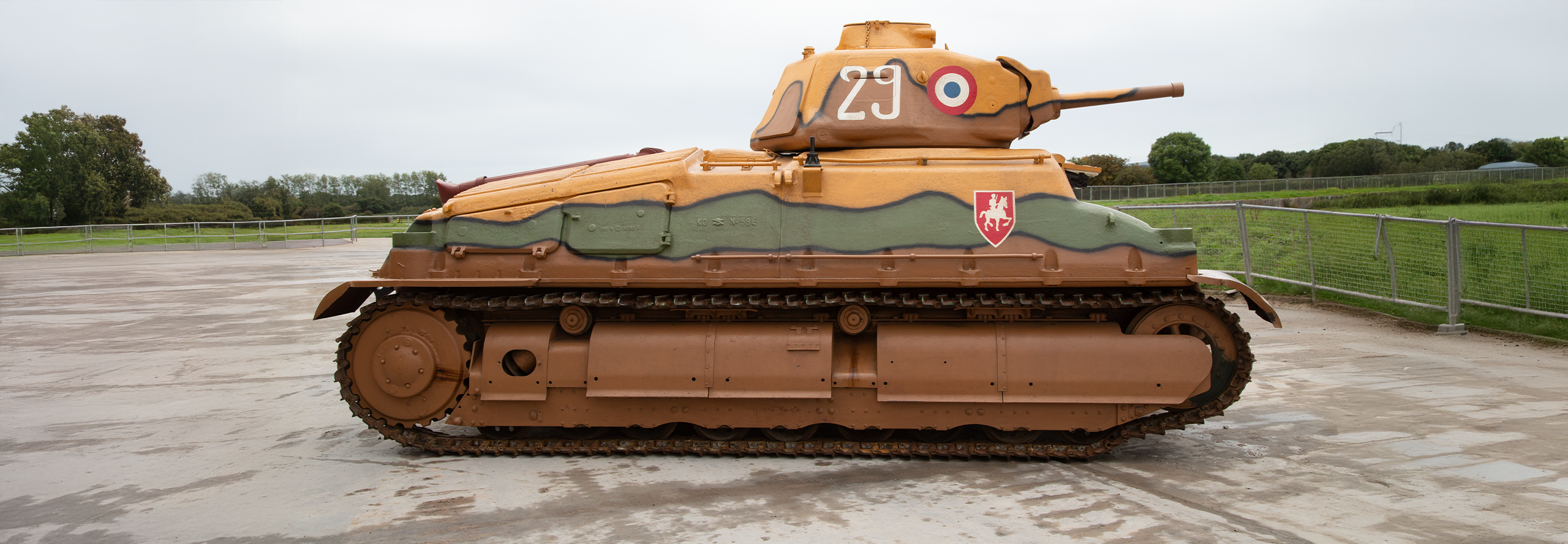 It was one of 297 captured by the Germans after the fall of France. We can tell this from various small modifications (the German Aerial base, the modified commander’s cupola (cut off in style adopted by Germans on captured French equipment)). The Germans used them across Europe for internal security and training.